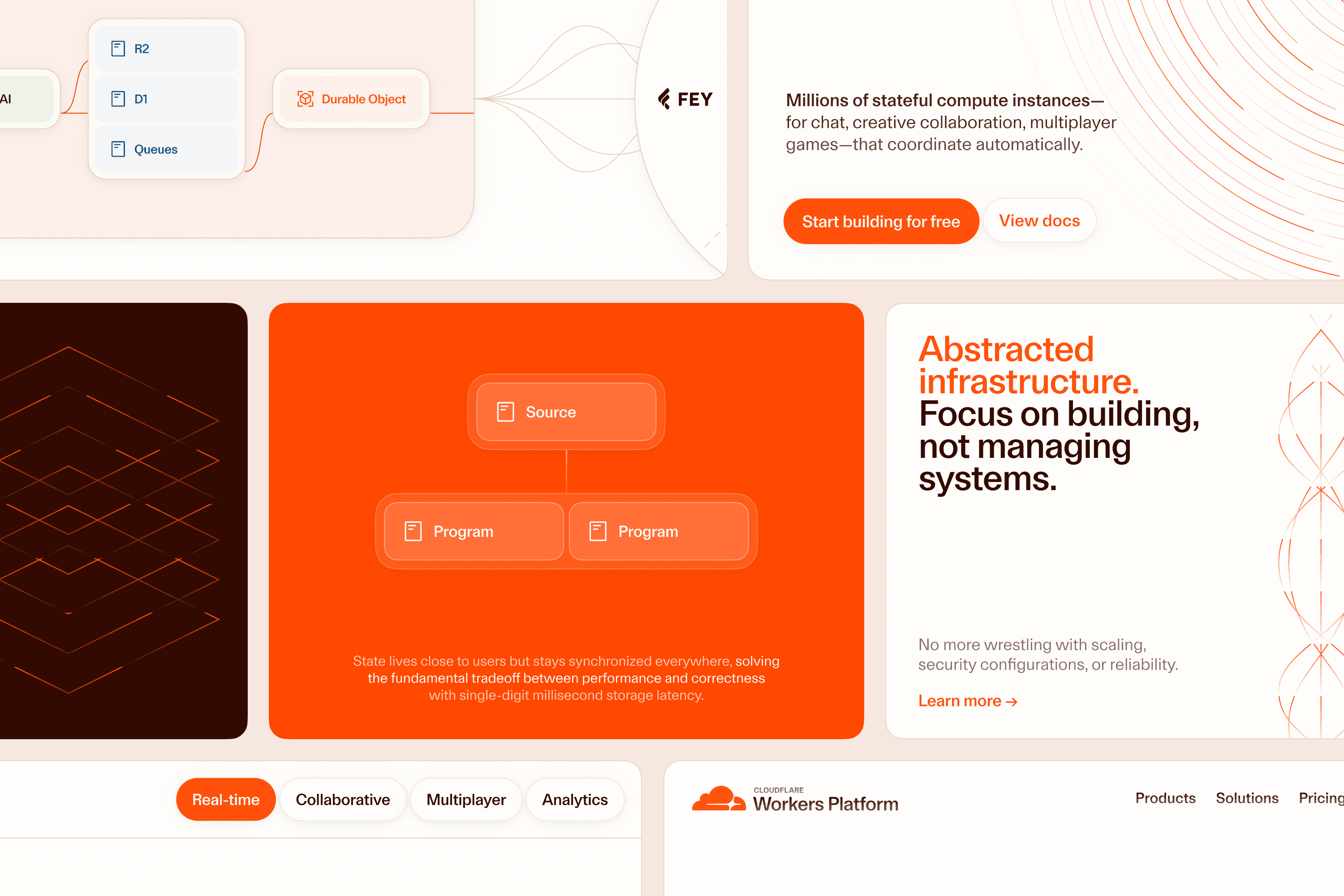 In collaboration with the web development shop Off-Brand, we were tasked with evolving the Cloudflare identity to create a section of the site for the Workers Platform, a collection of Cloudflare products powering the web.