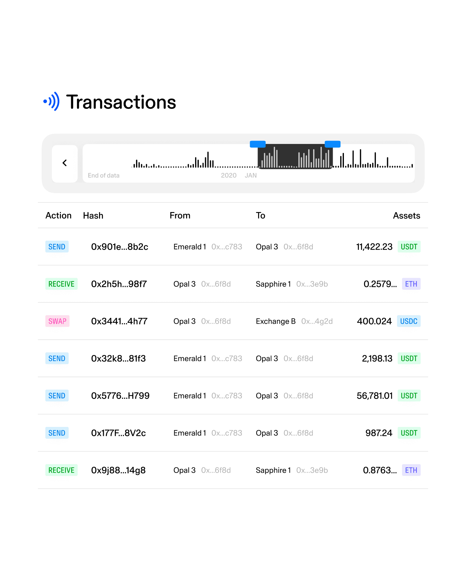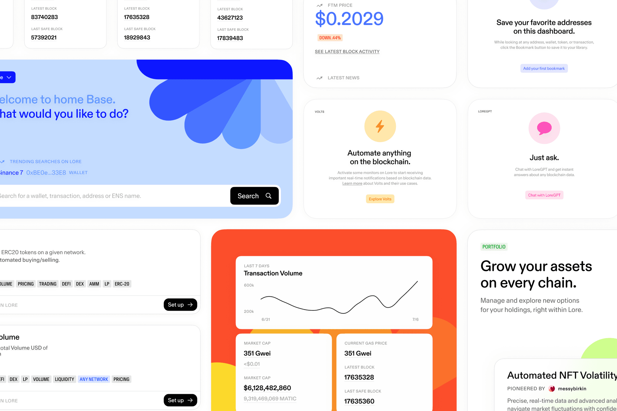 The logo, typographic voice, and color system all work to bring together a wide product suite of solutions built into a reimagined block explorer.